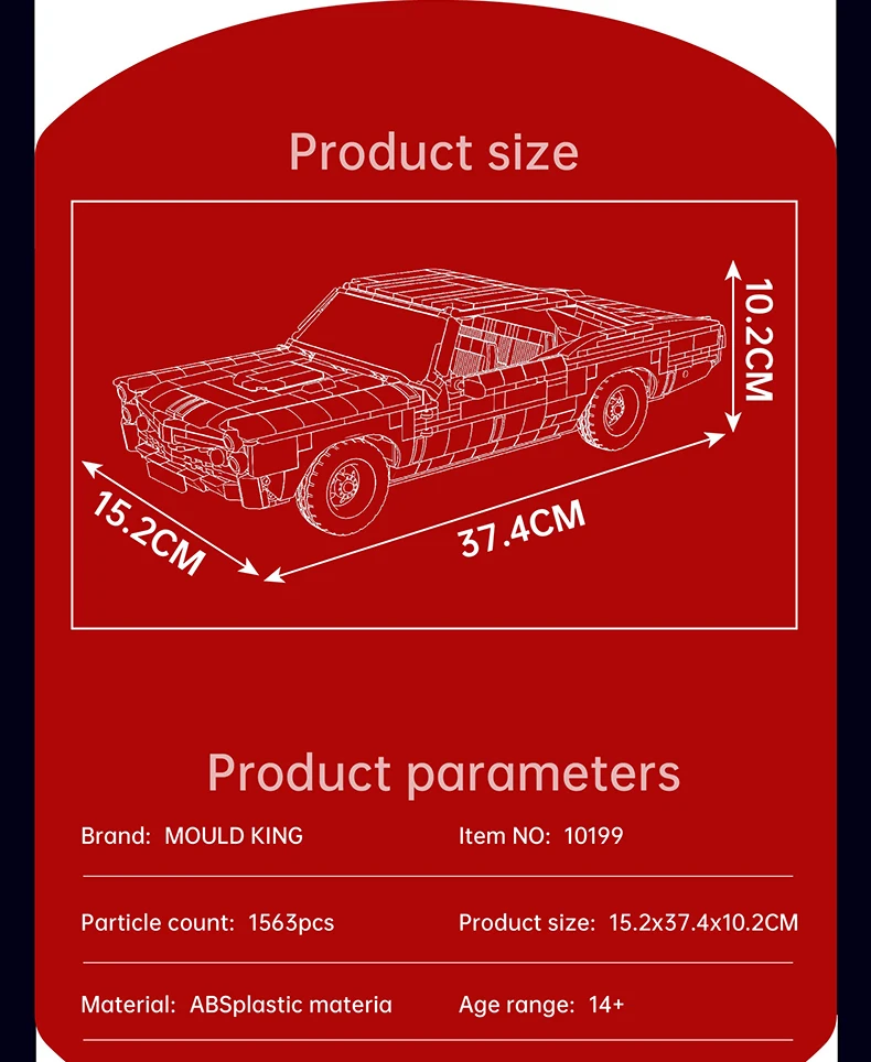 Mould King 1563 pieces 10199 Car Toys The MOC Muscle Car Building Block Assembly Oldtime Car Brick Set Children's gifts