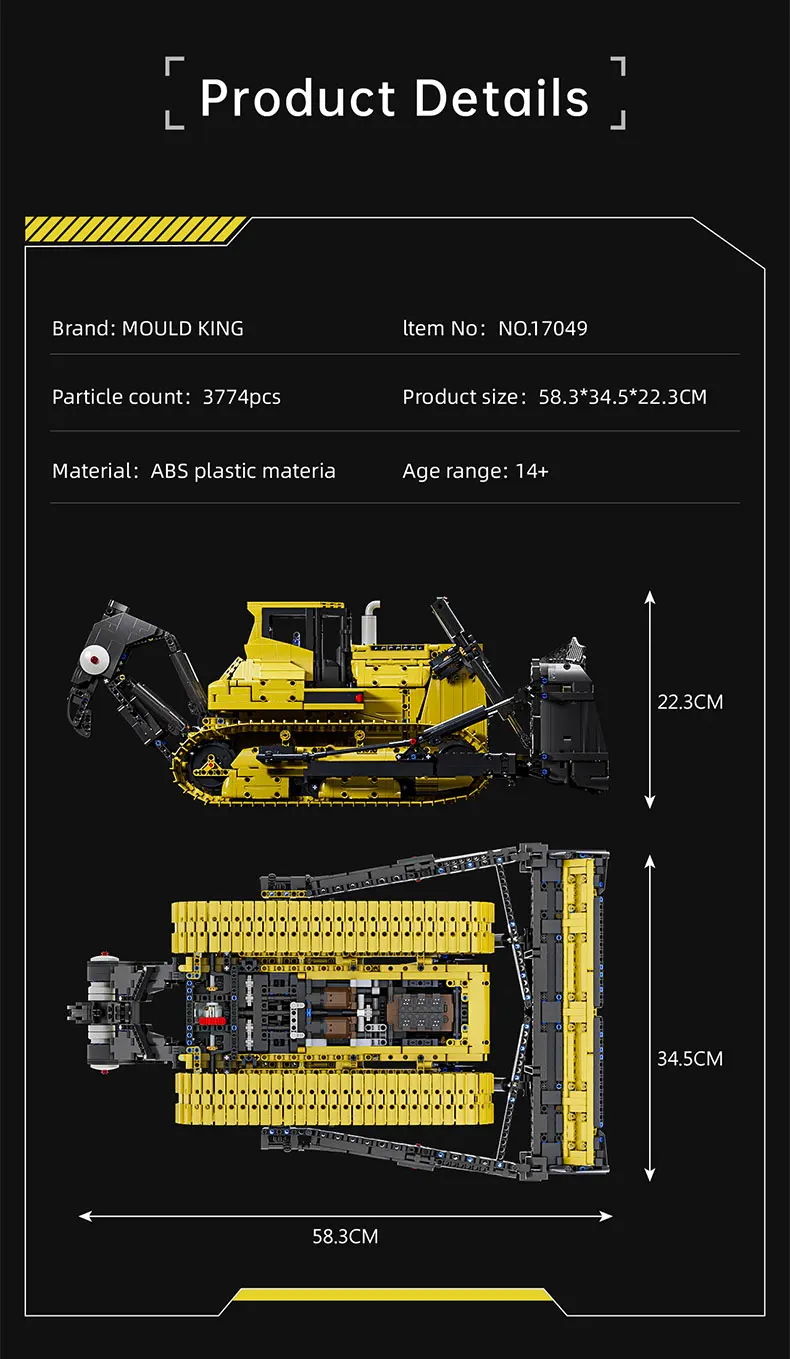 Mould King 17049 Technical Car Toys The APP Motorized PR766 Bulldozer Building Block Assembly Truck Model Kids Christmas Gifts