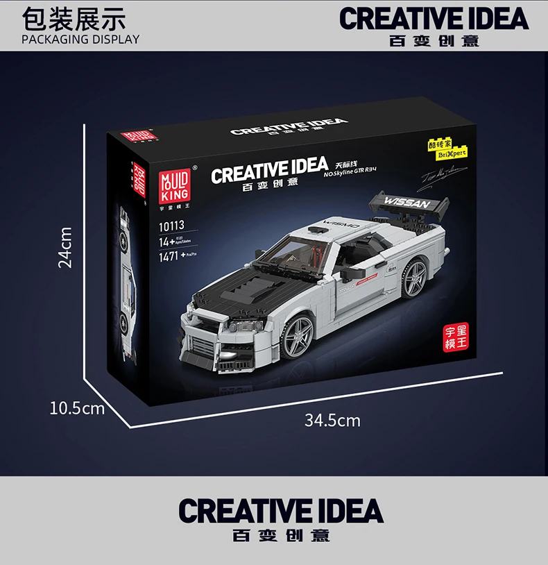 Mould King 10113 Technical Car Building Block The MOC Skyline Sport Racing Car Model Assembly Car Brick Toys Kids Christmas Gift