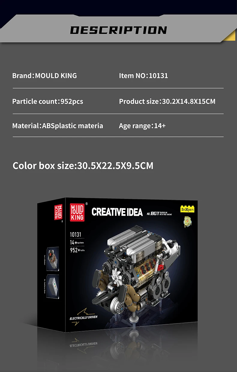 Mould King 10131 Technical Car Part Building Block W16 Engine for BGT Supercar Set Assembly Car Brick Toys Kids Christmas Gifts