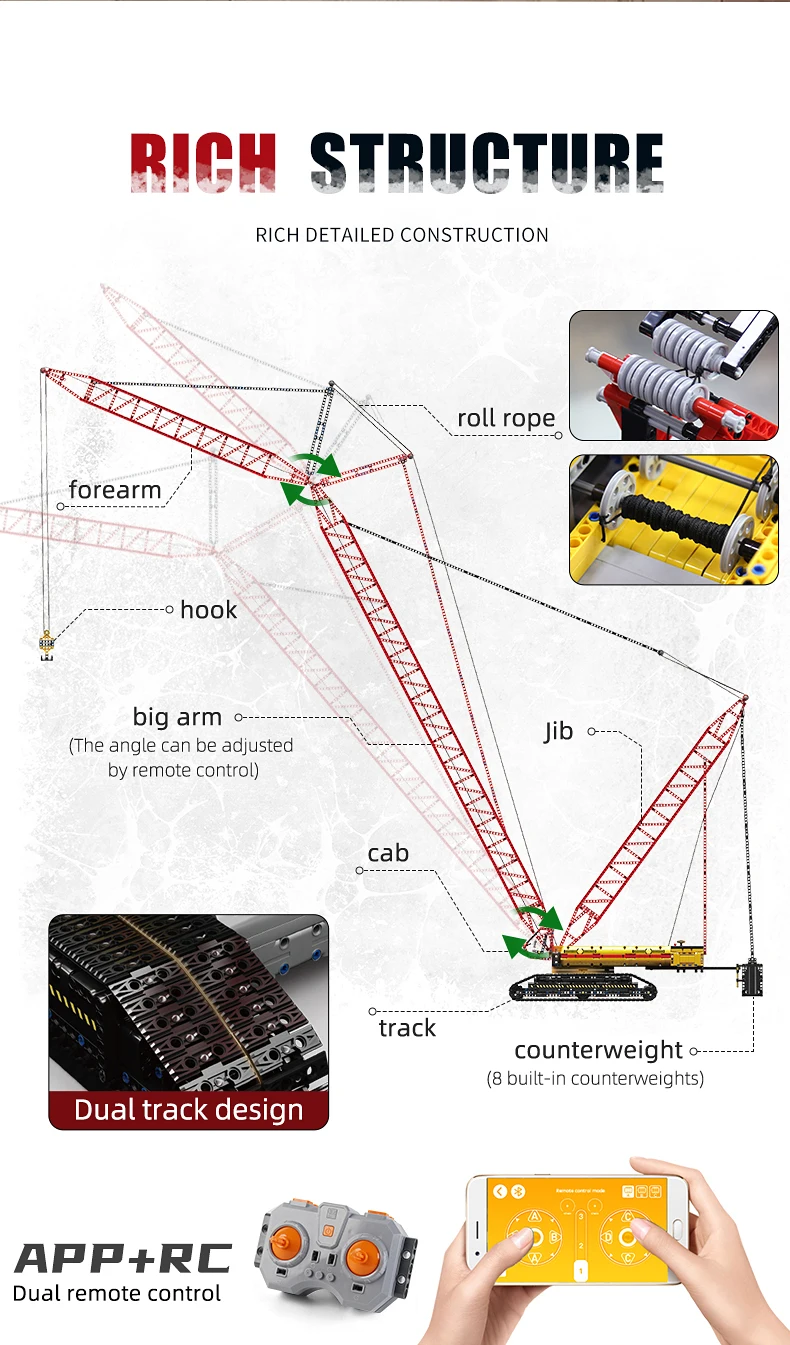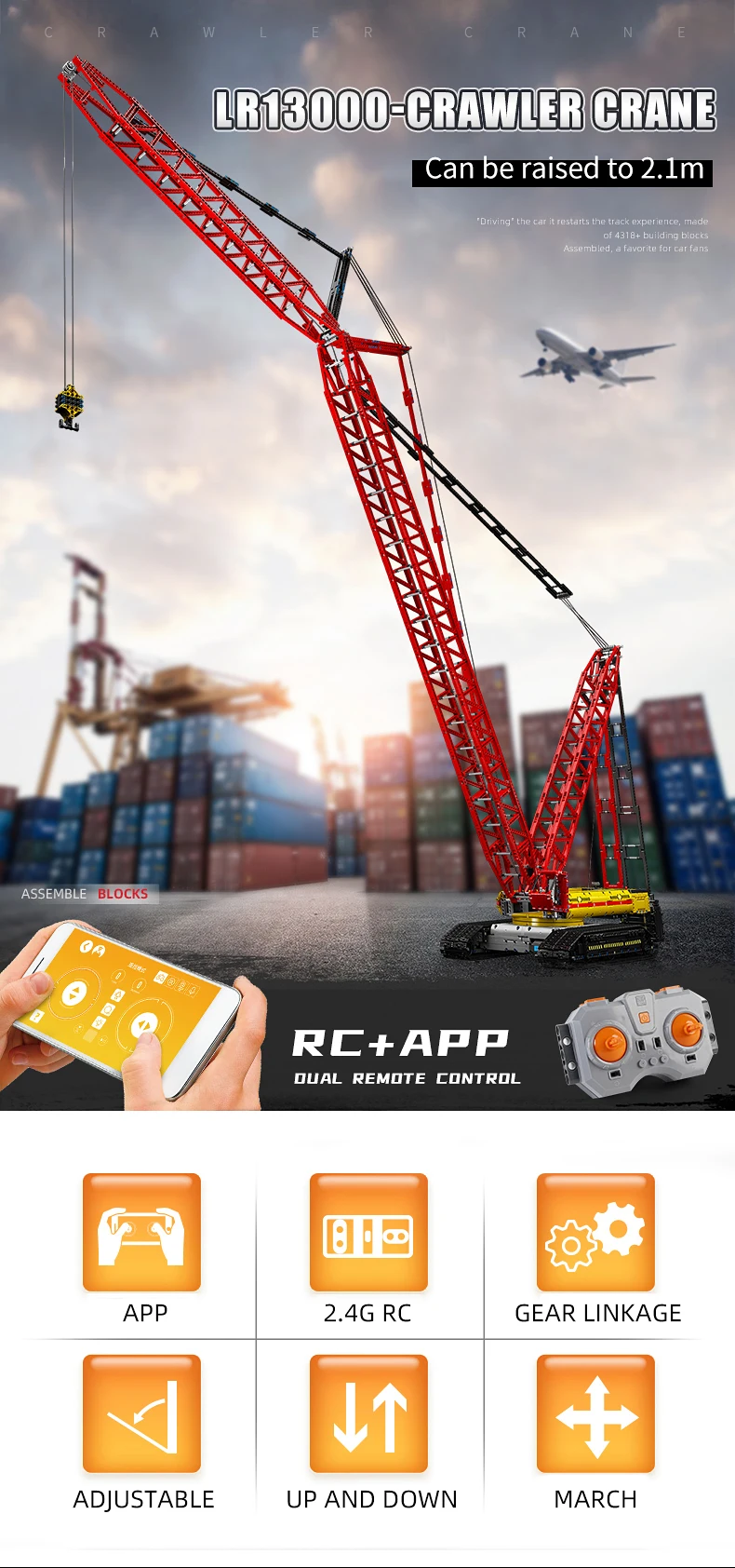 MOULD KING 17015 Technical Car Toys APP&RC Motorized Crawler Crane MOC Liebherr LR13000 Truck Building Blocks Bricks Kids Gifts